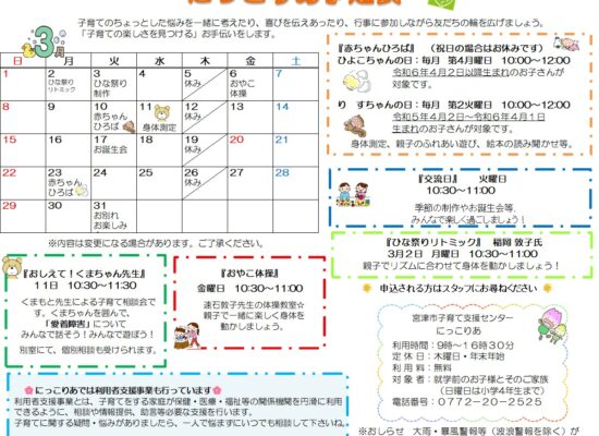 『にっこりあ』で、子育ての楽しさを一緒に見つけましょう!
