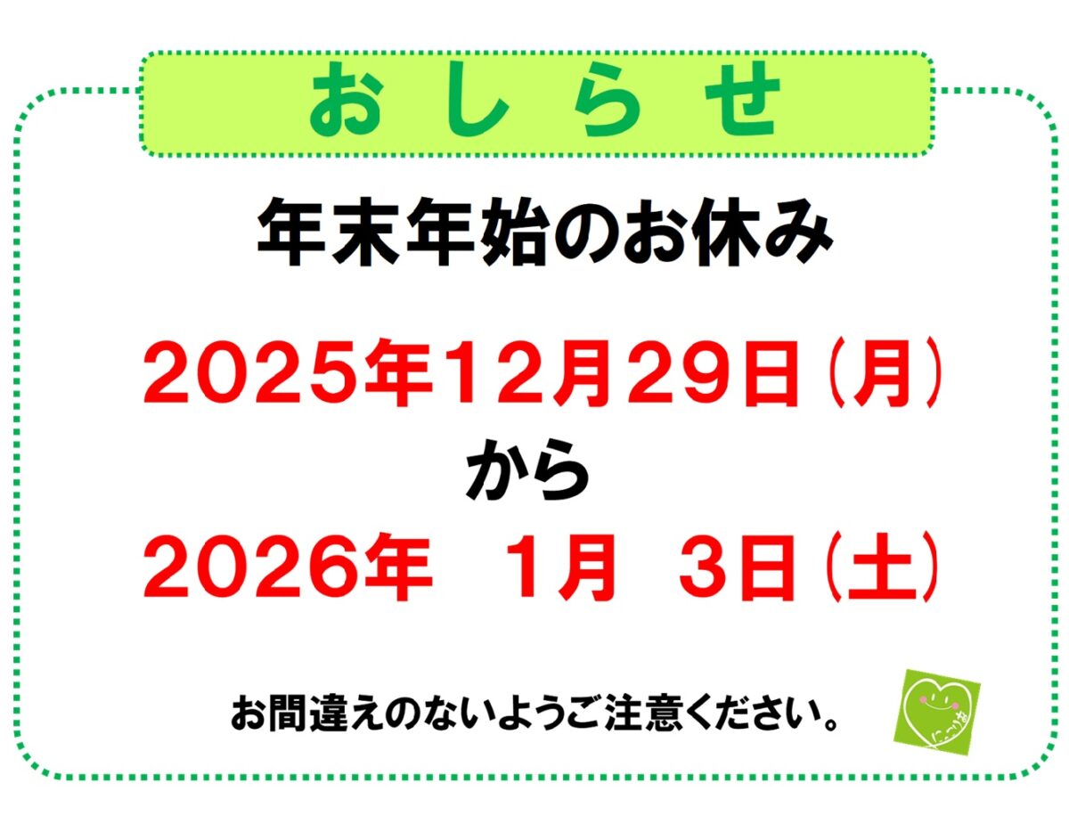 ホーム > お知らせ > お知らせ > 年末年始のお知らせ