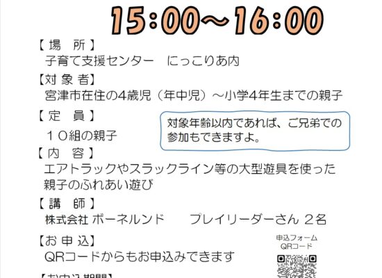 宮津市子育て支援センター「にっこりあ」は、就学前のお子さんとその保護者の皆さんに利用していただけます。
